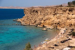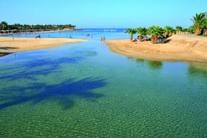 Makadi bay aan de Rode Zee met prachtige kleurschakeringen van het water. In de winter zo’n 20 graden. De pool die verwarmd is 29 graden is heerlijk.
