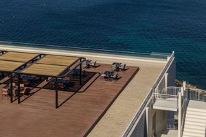 - Op een heuvel met prachtig uitzicht over zee