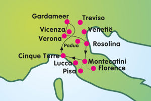 - Bezoek aan o.a. Venetië, Cinque Terre, Pisa, Lucca & Florence