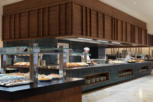 Het eten is wel vrijwel allemaal koud, weet niet hoe dit komt want de borden zijn verwarmd en het eten wordt meestal waar je bij s staat bereid.