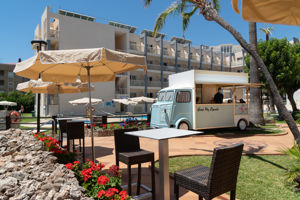 Prima hotel , ligweide en zwembad door de boulevard gescheiden van het strand, prettige (gratis) ligbedden, super schoon. En nog belangrijker , het is verboden om handdoeken als reservering op je bedje te leggen, goede regeling en werkt op enkele uitzonderingen (hufters ) na perfect.