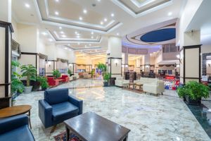 Hotel is geen 4 sterren waard eerder 3. Je moet smorgens je wekker vroeg zetten om een handoek te leggen op de ligbedden anders heb je niks meer om 8 uur. We hadden eerst een kamer in het bijgebouw die was heel klein en 2 aparte bedjes waar de veren doorheen kwamen en waar het naar de riool stonk na 3 dagen bijna niet slapen door de herrie uiteindelijk via de reisleider een andere kamer gekregen in het hoofdgebouw de kamer was goed alleen de herrie was er nog het is net een klankkast doordat het rond is.Personeel is onvriendelijk. Voor ons in ieder geval nooit meer.