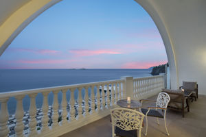 Schitterende locatie met privé strand, palmbomen, blauwe zee en bergen met een echte waterval op het resort.