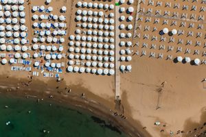 Goede strandbedjes met parasol worden netjes voor je schoongemaakt door Suleyman .
