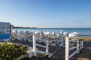 Erg luxe dat het strand aan het hotel ligt en voorzien van veel ligbedden en voldoende parasols.